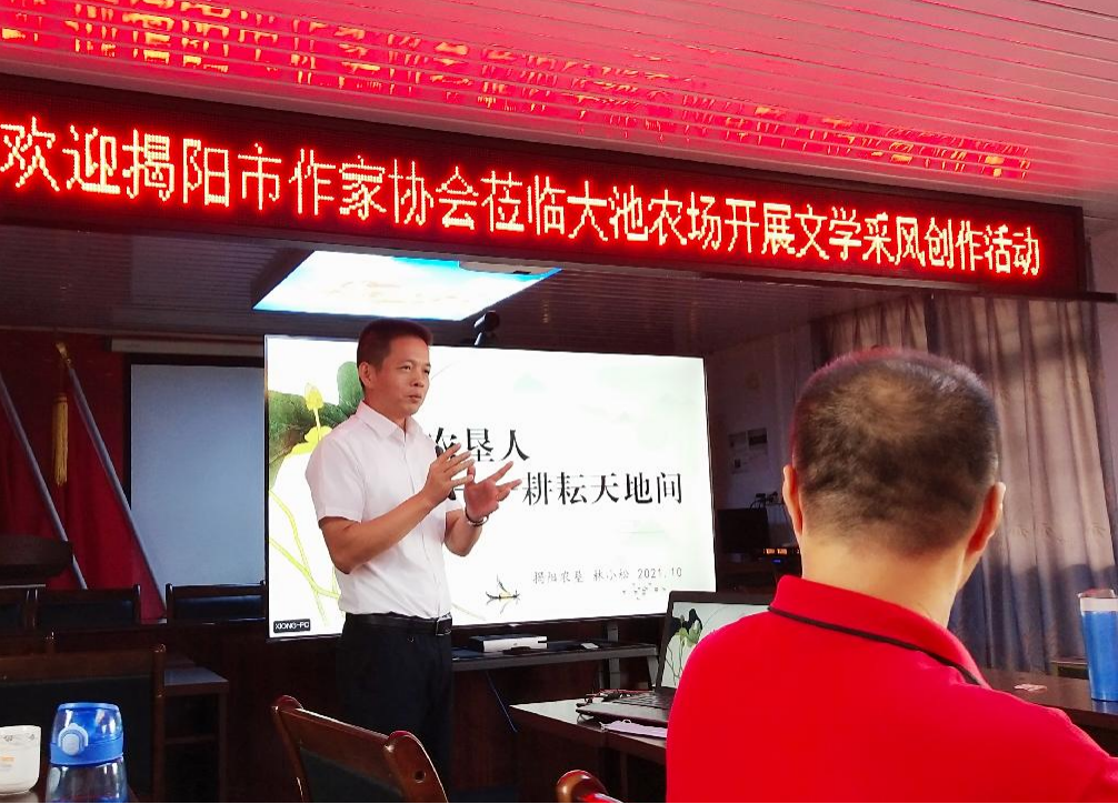 揭陽農(nóng)墾集團(tuán)有限公司 黨組成員、紀(jì)檢組組長(zhǎng)、工會(huì)主席林小松參加了活動(dòng),并做了題為“農(nóng)墾人,耕耘天地間”的推介講演。