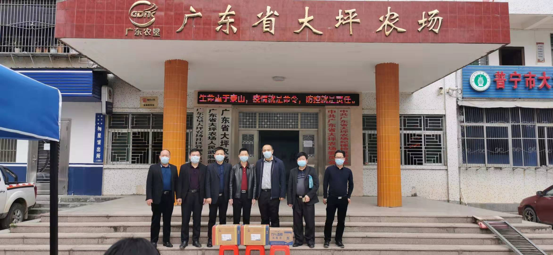 在新型冠狀病毒感染的肺炎疫情防控工作的緊要關(guān)頭,2月10日,揭陽農(nóng)墾局黨組書記朱勇一行到大坪農(nóng)場疫情防控一線檢查疫情防控工作、并帶來疫情防疫物資一批慰問一線工作人員。